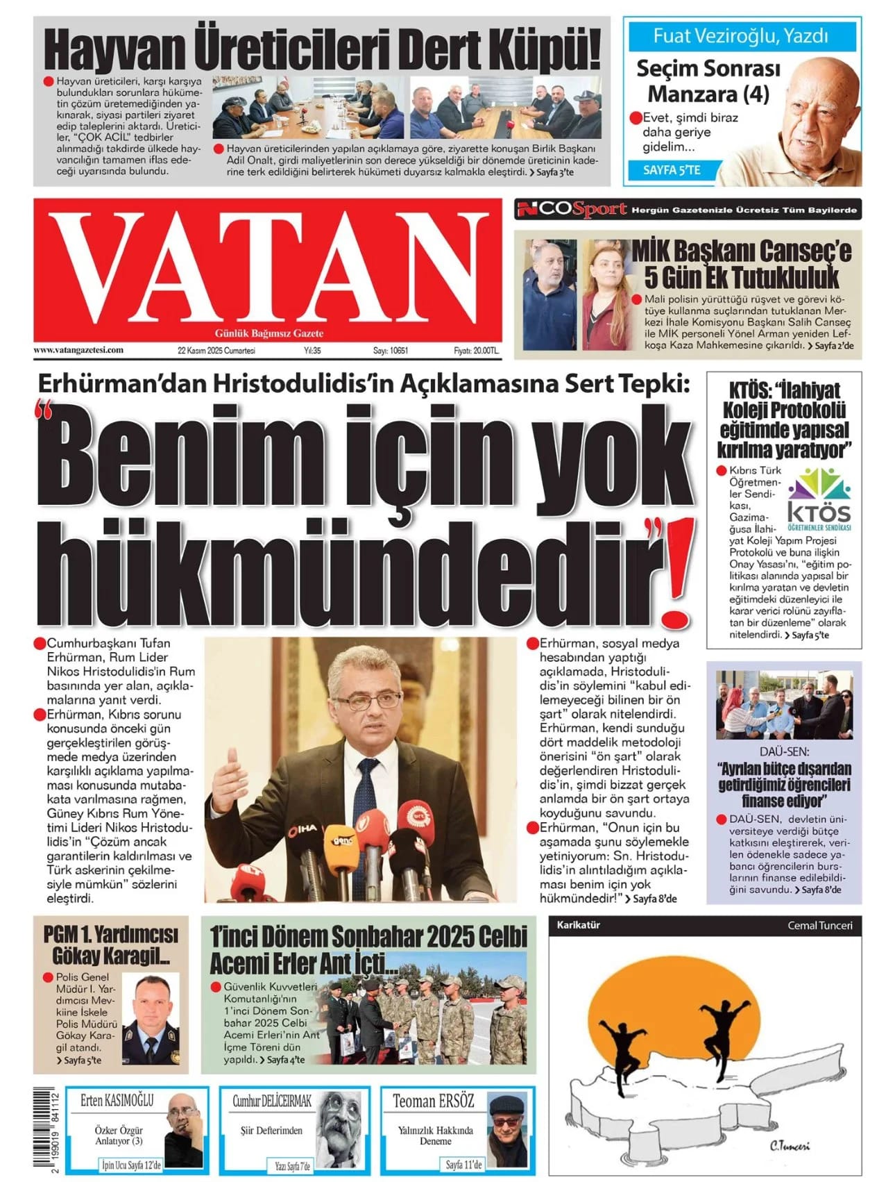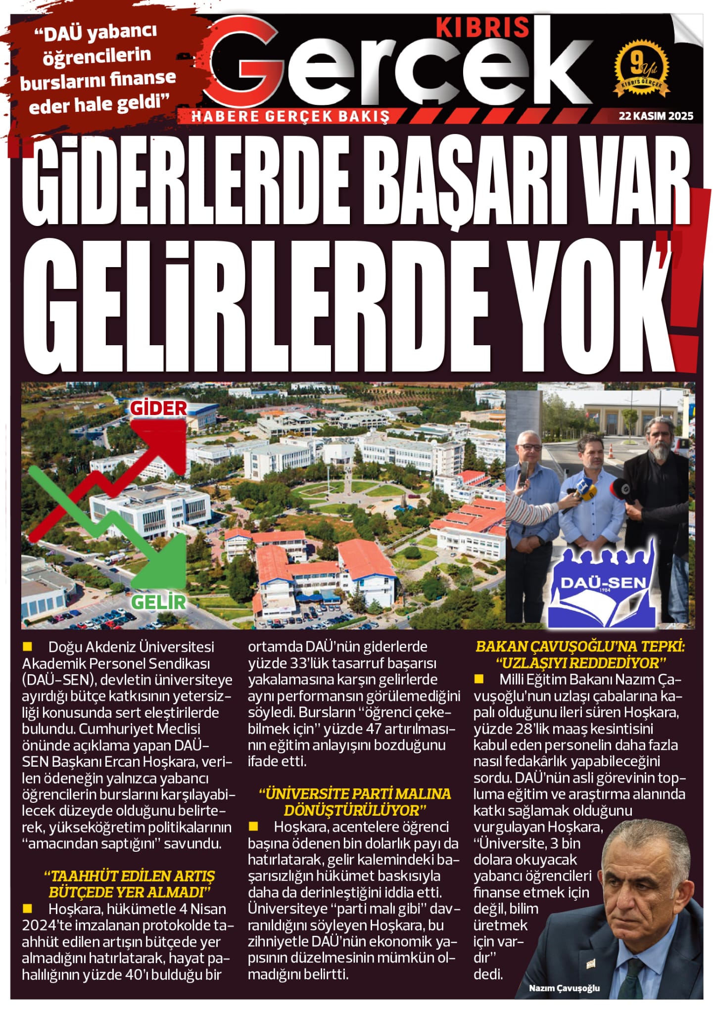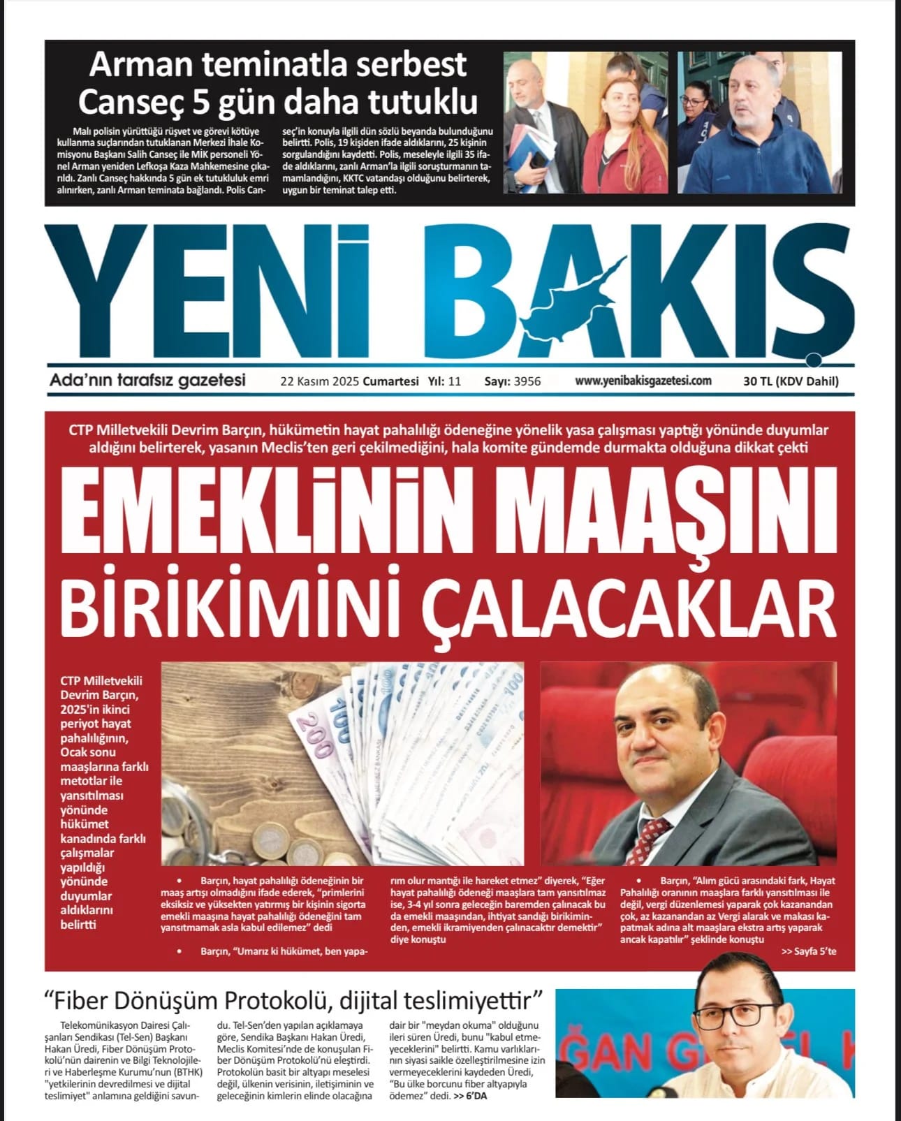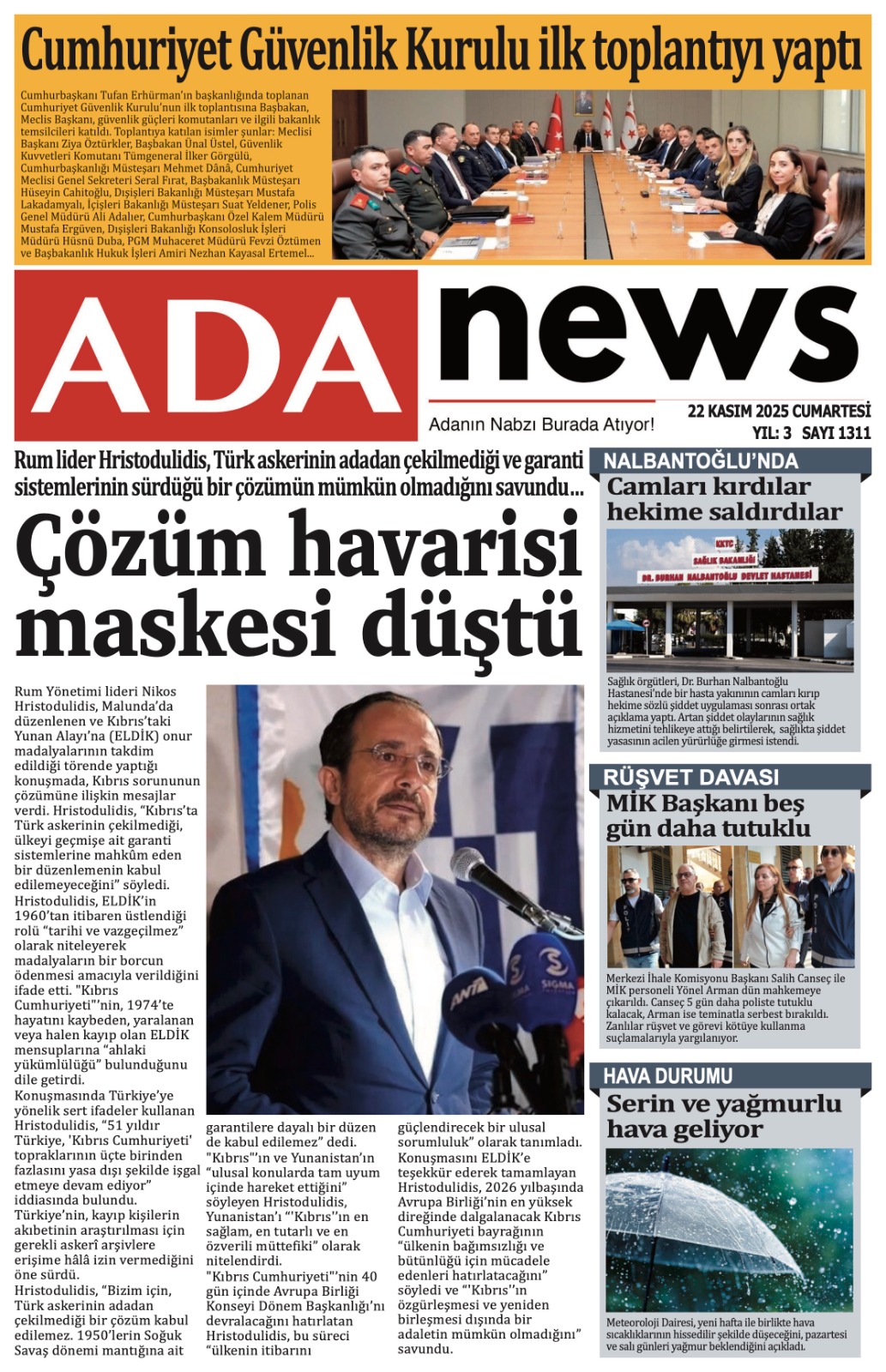 KıbrısGAZETE MANŞETLERİ (22 KASIM 2025)Kasım 22, 2025 9:27 am Paylaş İlgili haberler GİRNE–TATLISU YOLUNDAKİ KAZANIN ZANLISI TEMİNATA BAĞLANDI Aralık 23, 2025 YASA DIŞI KAÇIŞ PLANI ÇÖKTÜ, ZANLILAR CEZAEVİNE GÖNDERİLDİ Aralık 23, 2025 ÇANAKKALE'DE YOL 13 YILDIR HER YAĞIŞTA GÖLE DÖNÜYOR Aralık 23, 2025 Cevap bırakın Yanıtı iptal etE-posta adresiniz yayınlanmayacak. Gerekli alanlar * ile işaretlenmişlerdirYorumAd * E-posta * İnternet sitesi Daha sonraki yorumlarımda kullanılması için adım, e-posta adresim ve site adresim bu tarayıcıya kaydedilsin.