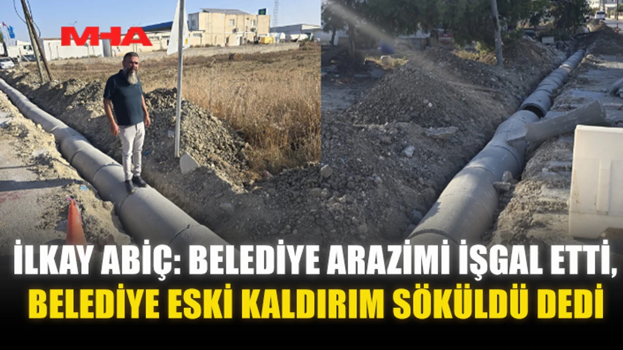 Korkuteli köyünde Akdoğan Belediyesi’nin köy içerisinde su drenaj boruları döşemek için kaldırımları söktüğü bölgede, İlkay Abiç belediyenin yasaya aykırı şekilde kendi arazisine girdiğini iddia etti.