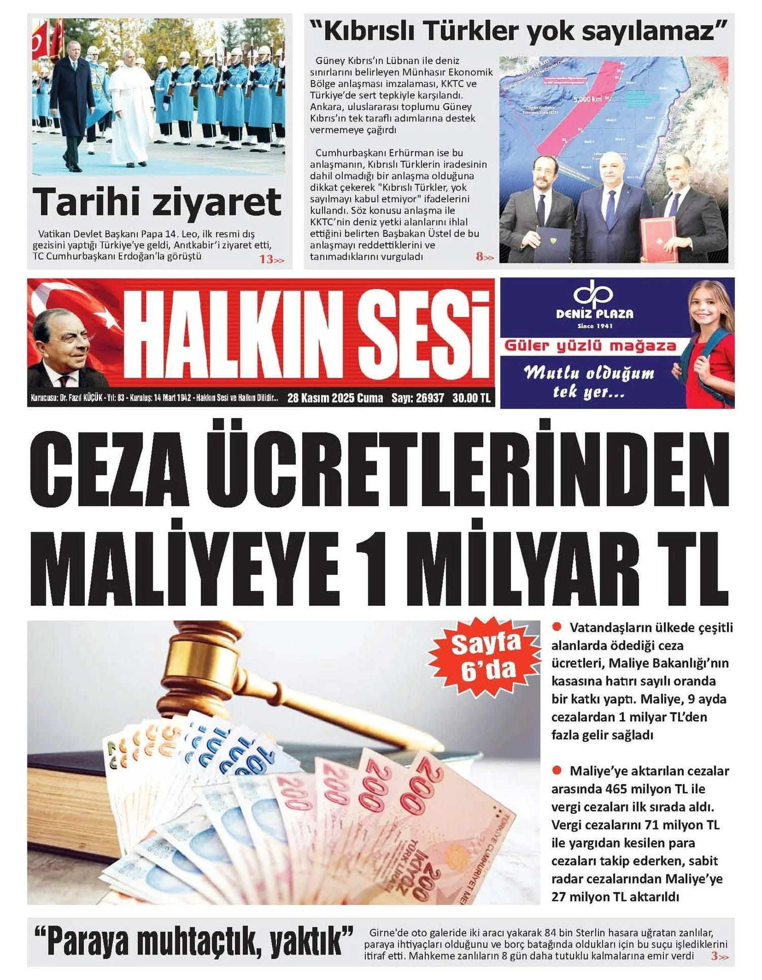 KıbrısGAZETE MANŞETLERİ (28 KASIM 2025)Kasım 28, 2025 7:16 am Paylaş İlgili haberler "11. YARGI PAKETİ" TBMM GENEL KURULUNDA Aralık 24, 2025 YENİ YIL PAZARI BELLAPAİS KÖY MEYDANI’NDA KURULUYOR Aralık 24, 2025 GİAD: ENFLASYON HESAPLARI GÜNCEL DEĞİL Aralık 24, 2025 Cevap bırakın Yanıtı iptal etE-posta adresiniz yayınlanmayacak. Gerekli alanlar * ile işaretlenmişlerdirYorumAd * E-posta * İnternet sitesi Daha sonraki yorumlarımda kullanılması için adım, e-posta adresim ve site adresim bu tarayıcıya kaydedilsin.