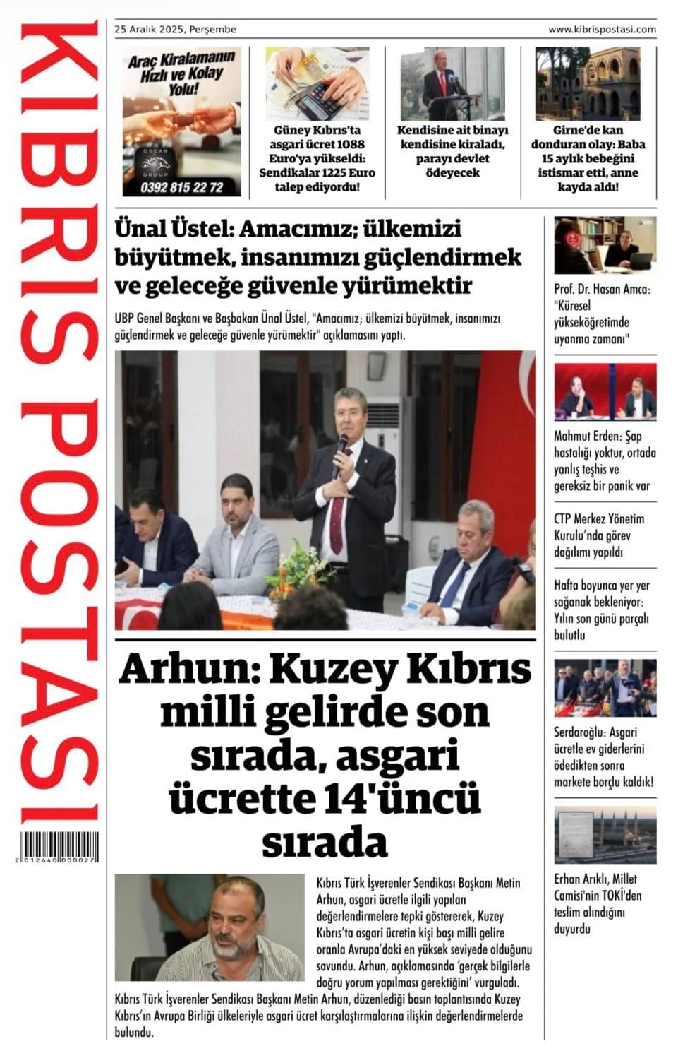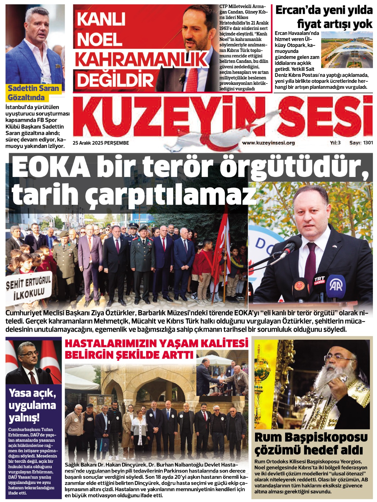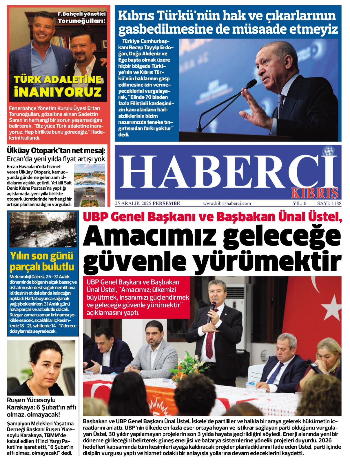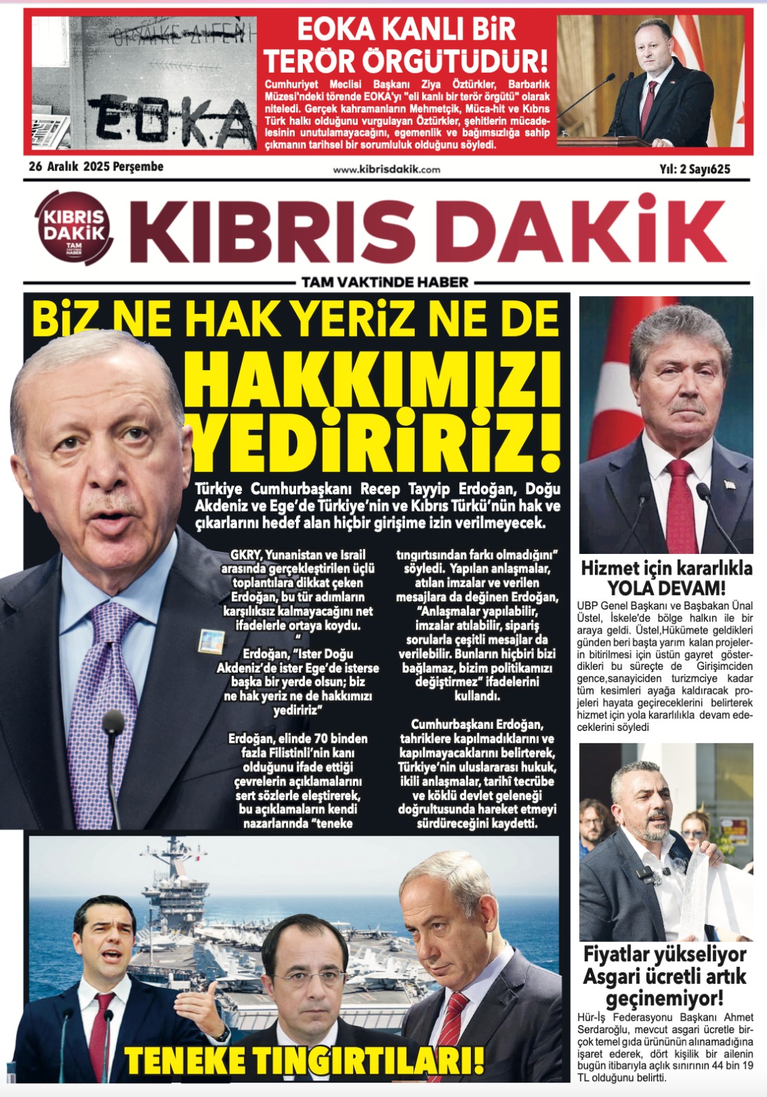 KıbrısGAZETE MANŞETLERİ (25 ARALIK 2025)Aralık 25, 2025 8:18 am Paylaş İlgili haberler NÖBETÇİ ECZANELER (25 ARALIK 2025) Aralık 25, 2025 GİRNE'YE BAĞLI ZEYTİNLİK’TE 15 AYLIK BEBEĞE İST*SMAR! Aralık 24, 2025 "11. YARGI PAKETİ" TBMM GENEL KURULUNDA Aralık 24, 2025 Cevap bırakın Yanıtı iptal etE-posta adresiniz yayınlanmayacak. Gerekli alanlar * ile işaretlenmişlerdirYorumAd * E-posta * İnternet sitesi Daha sonraki yorumlarımda kullanılması için adım, e-posta adresim ve site adresim bu tarayıcıya kaydedilsin.