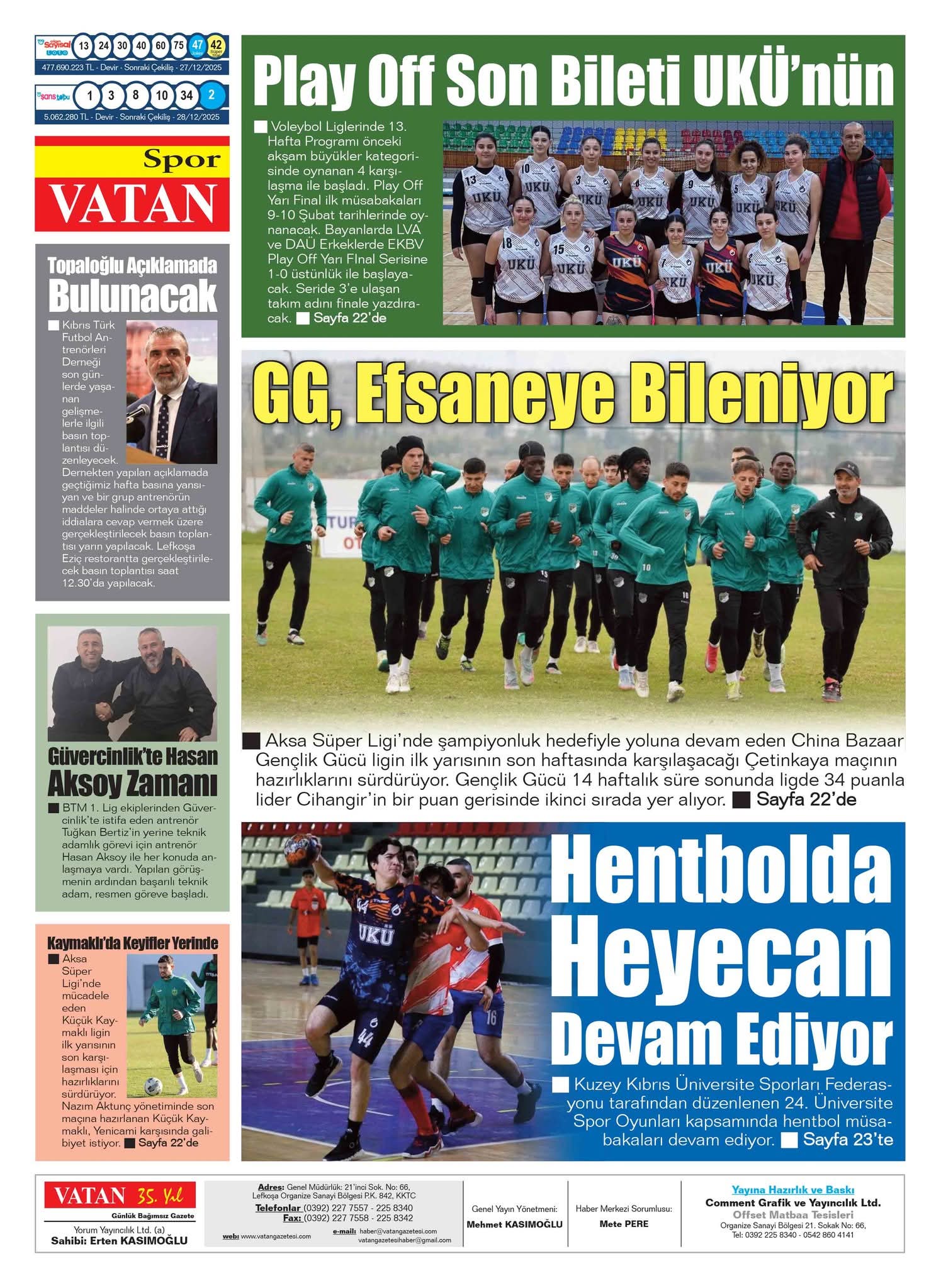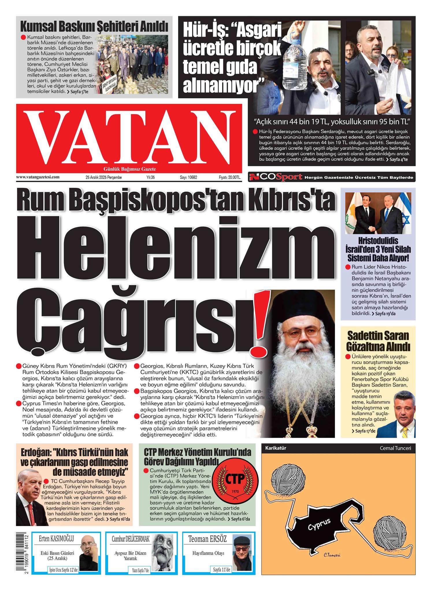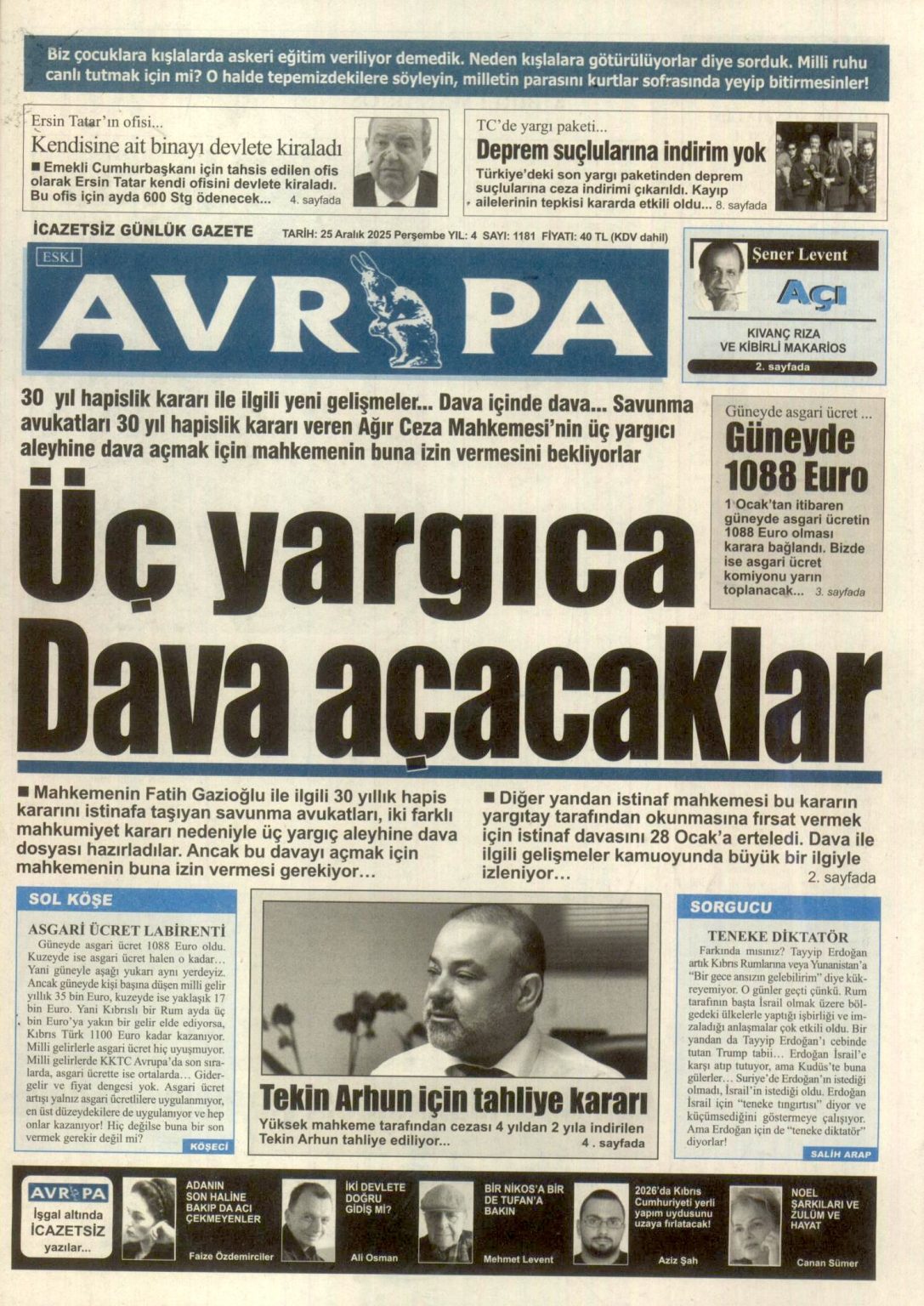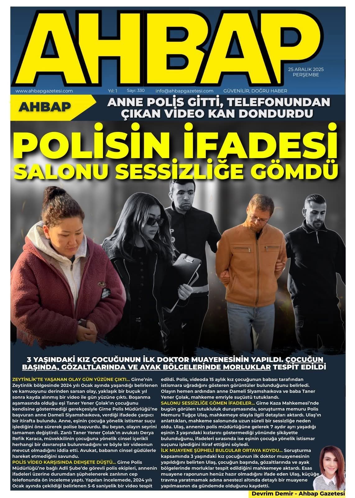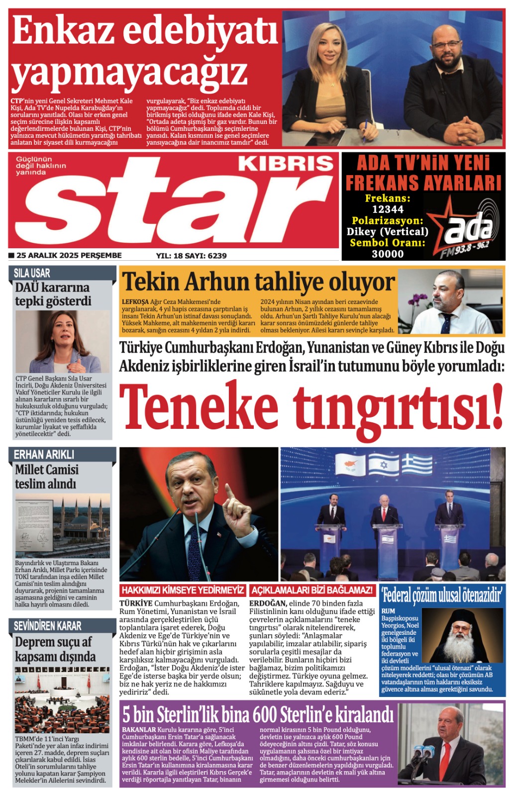 KıbrısGAZETE MANŞETLERİ (25 ARALIK 2025)Aralık 25, 2025 8:18 am Paylaş İlgili haberler NÖBETÇİ ECZANELER (25 ARALIK 2025) Aralık 25, 2025 GİRNE'YE BAĞLI ZEYTİNLİK’TE 15 AYLIK BEBEĞE İST*SMAR! Aralık 24, 2025 "11. YARGI PAKETİ" TBMM GENEL KURULUNDA Aralık 24, 2025 Cevap bırakın Yanıtı iptal etE-posta adresiniz yayınlanmayacak. Gerekli alanlar * ile işaretlenmişlerdirYorumAd * E-posta * İnternet sitesi Daha sonraki yorumlarımda kullanılması için adım, e-posta adresim ve site adresim bu tarayıcıya kaydedilsin.
