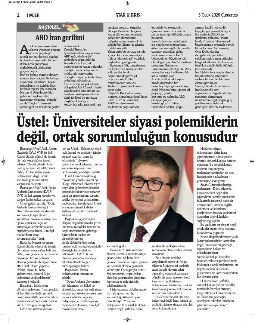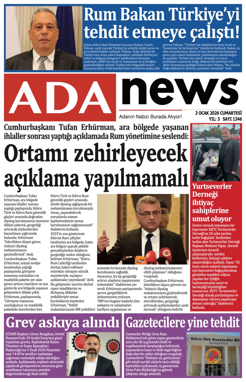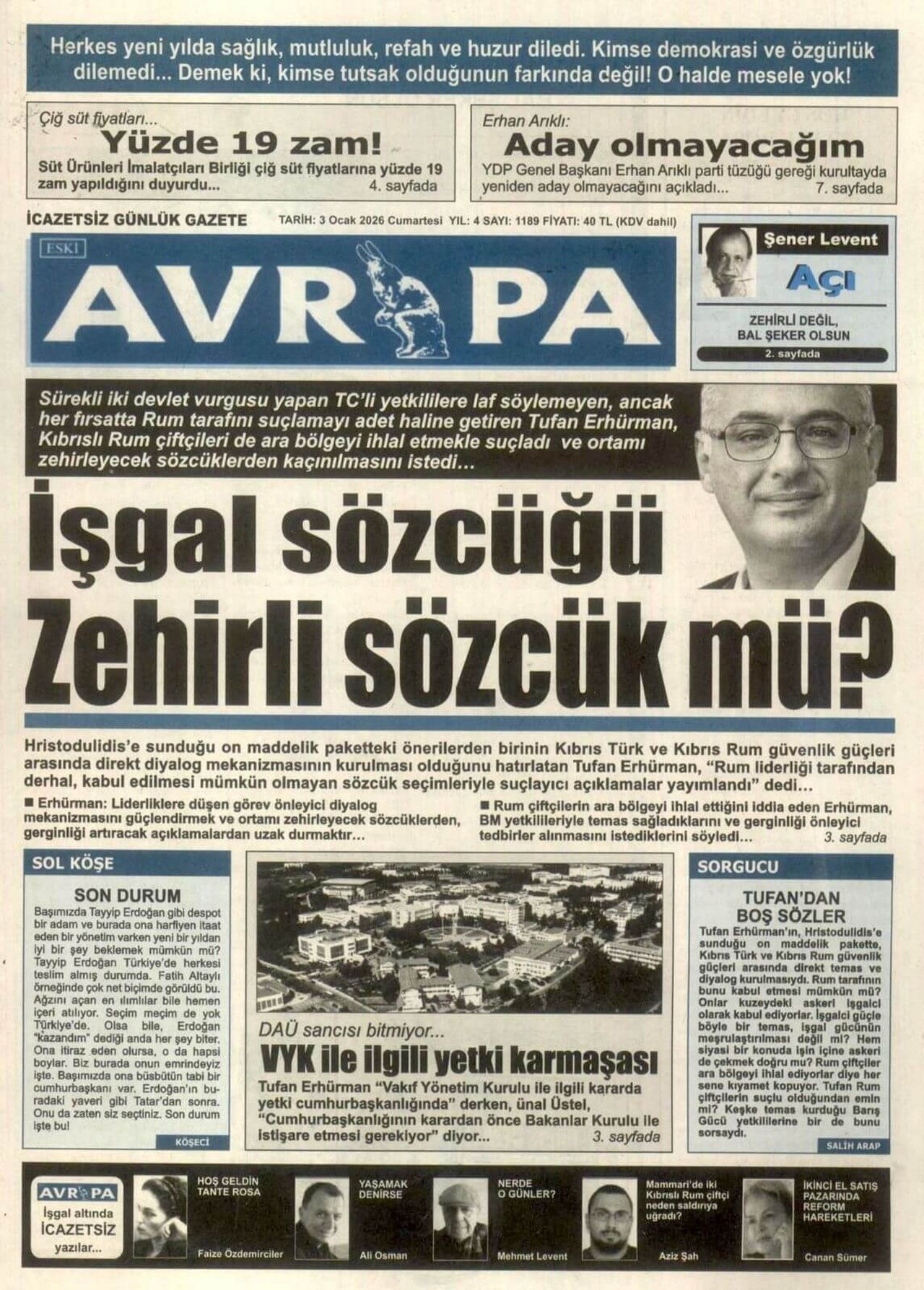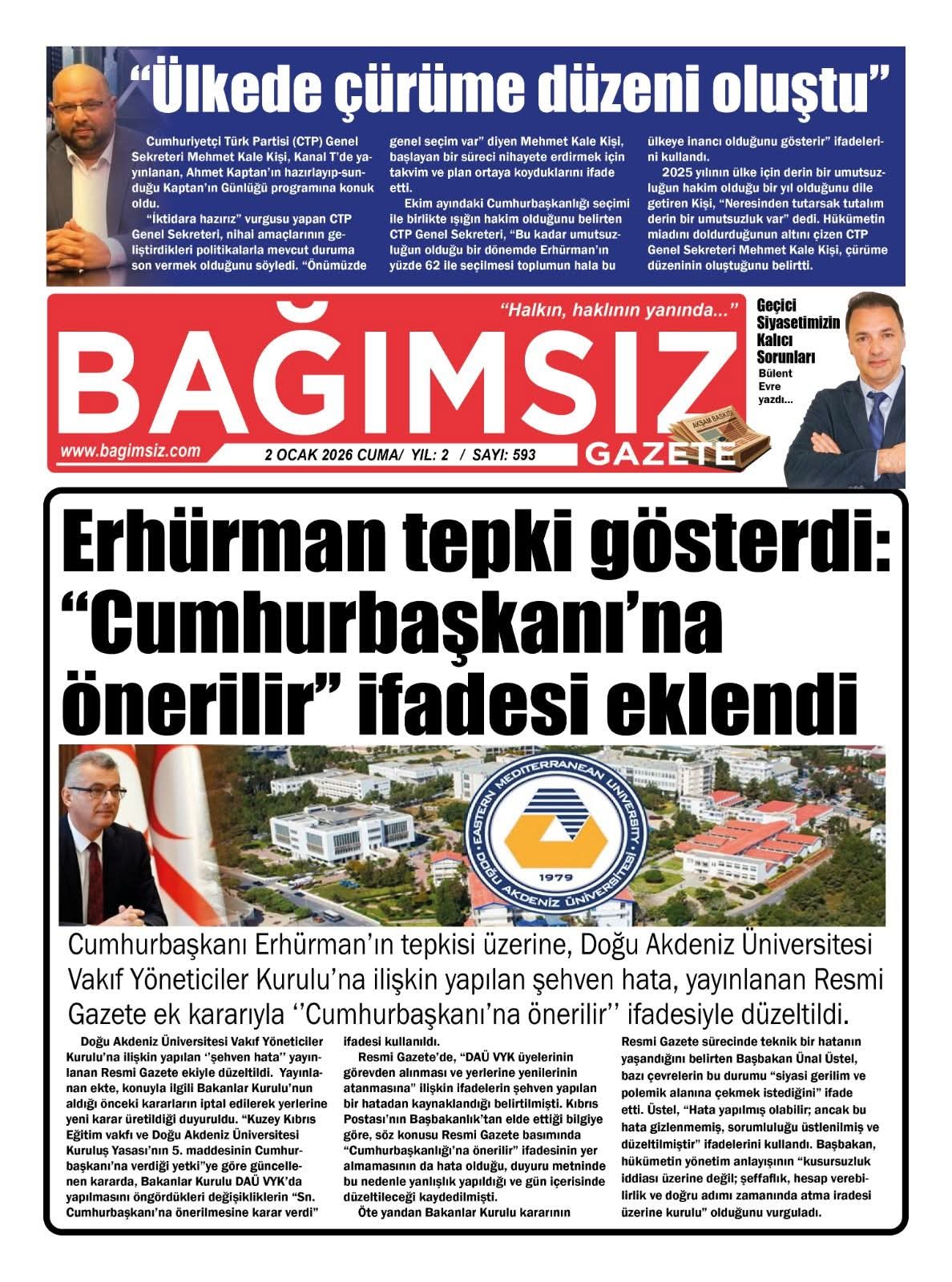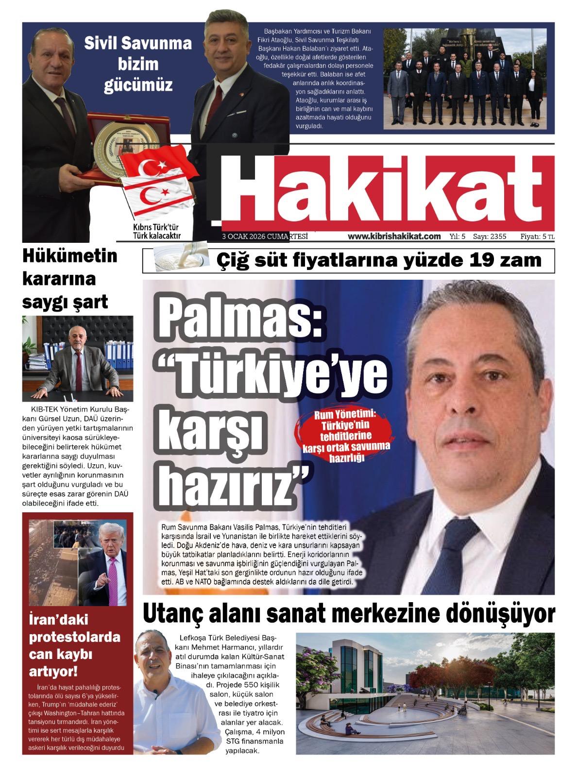 KıbrısManşetGAZETE MANŞETLERİ (3 OCAK 2026)Ocak 3, 2026 8:35 am PaylaşEtiketlendi:Kibrisdakik.com KKTC Gazete Manşetleri 5 Kasım 2025 İlgili haberler HAMİLEYKEN İKİNCİ KEZ HAMİLE KALDI! Ocak 9, 2026 VETERİNER HEKİMLER BİRLİĞİ: “ŞAP SÜRECİNDE REHAVETE KAPILMAYIN” Ocak 9, 2026 “SPORUN VİZYONU EĞİTİM SEMİNERİ” ANKARA’DA ORGANİZE EDİLDİ Ocak 9, 2026 Cevap bırakın Yanıtı iptal etE-posta adresiniz yayınlanmayacak. Gerekli alanlar * ile işaretlenmişlerdirYorumAd * E-posta * İnternet sitesi Daha sonraki yorumlarımda kullanılması için adım, e-posta adresim ve site adresim bu tarayıcıya kaydedilsin.