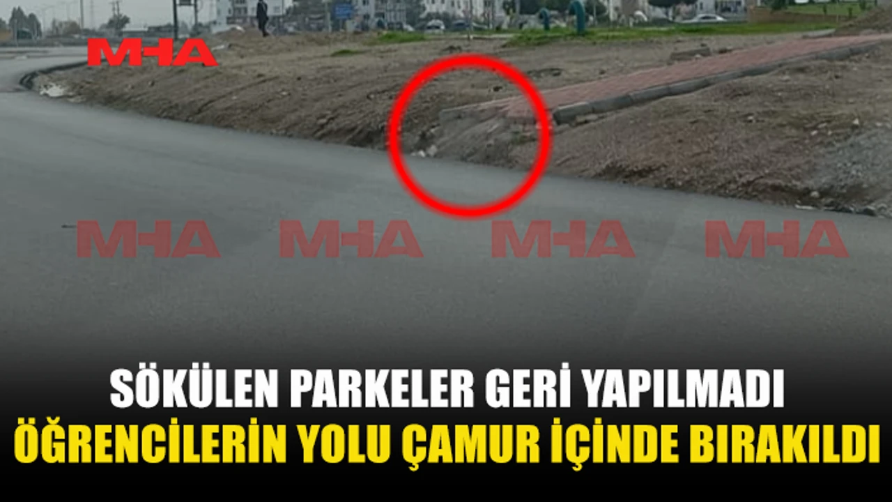 SÖKÜLEN PARKELER GERİ YAPILMADI ÖĞRENCİLERİN YOLU ÇAMUR İÇİNDE BIRAKILDI