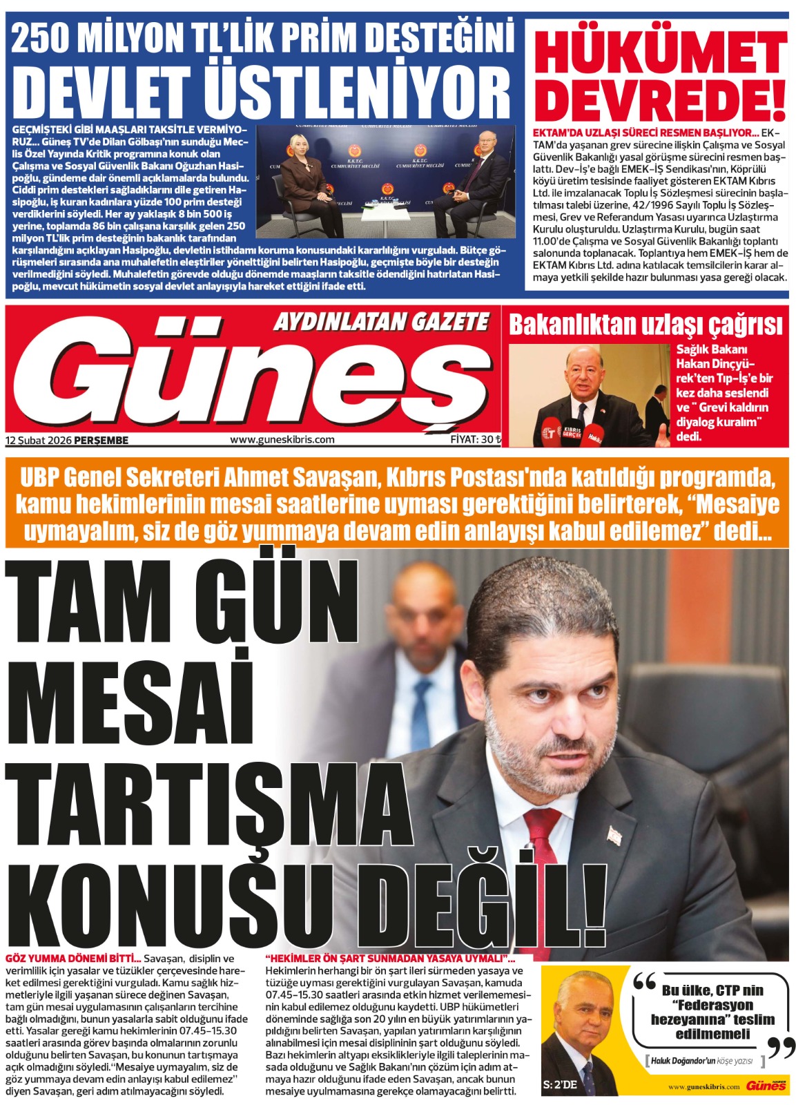 GAZETE MANŞETLERİ (12 ŞUBAT 2026)