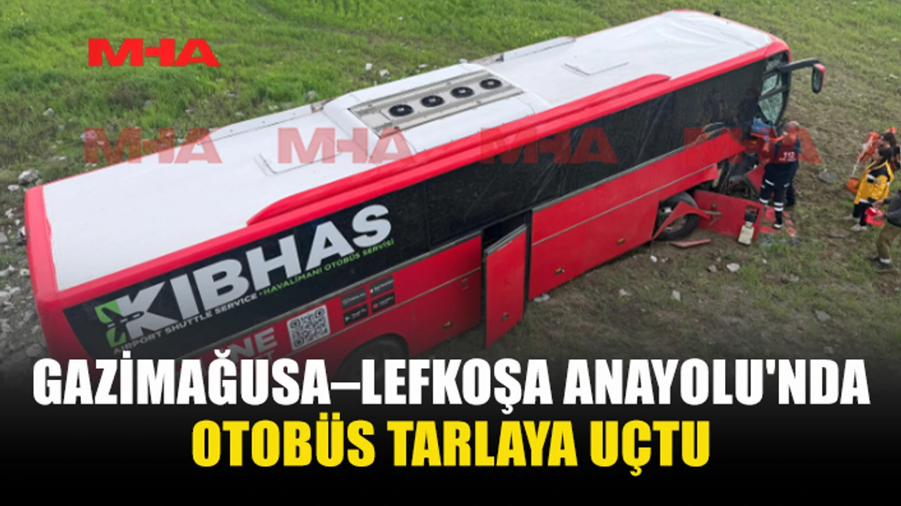 Polis Basın Subaylığı’ndan alınan bilgiye göre 13.02.2026 tarihinde saat 14. 20 sıralarında, Gazimağusa – Lefkoşa Anayolunun Halkbank Çemberi üzerinde, Ali Kelleci (E-58) yönetimindeki TAA 970 K plakalı otobüs ile batı istikametine doğru seyrettiği esnada Halk Bank Çemberine geldiğinde dikkatsizliği sonucu direksiyon hakimiyetini kaybederek orta refüje çarpmasına müteakip kontrolsüzce yoluna devam ederek çember içerisinden geçip yolun solunda bulunan taş duvara çarpıp yaklaşık 6 metre derinliğindeki tarla içerisine düşerek tekerlekleri üzerinde durmuştur. Kaza sonucu yaralanan otobüs sürücüsü Ali Kelleci ile otobüste yolcu olarak bulunan Bogdan SUSHCHUK (E-20) kaldırıldıkları Lefkoşa Dr Burhan Nalbantoğlu Devlet Hastanesinde tedavileri halen sürüyor. Soruşturma devam etmektedir.