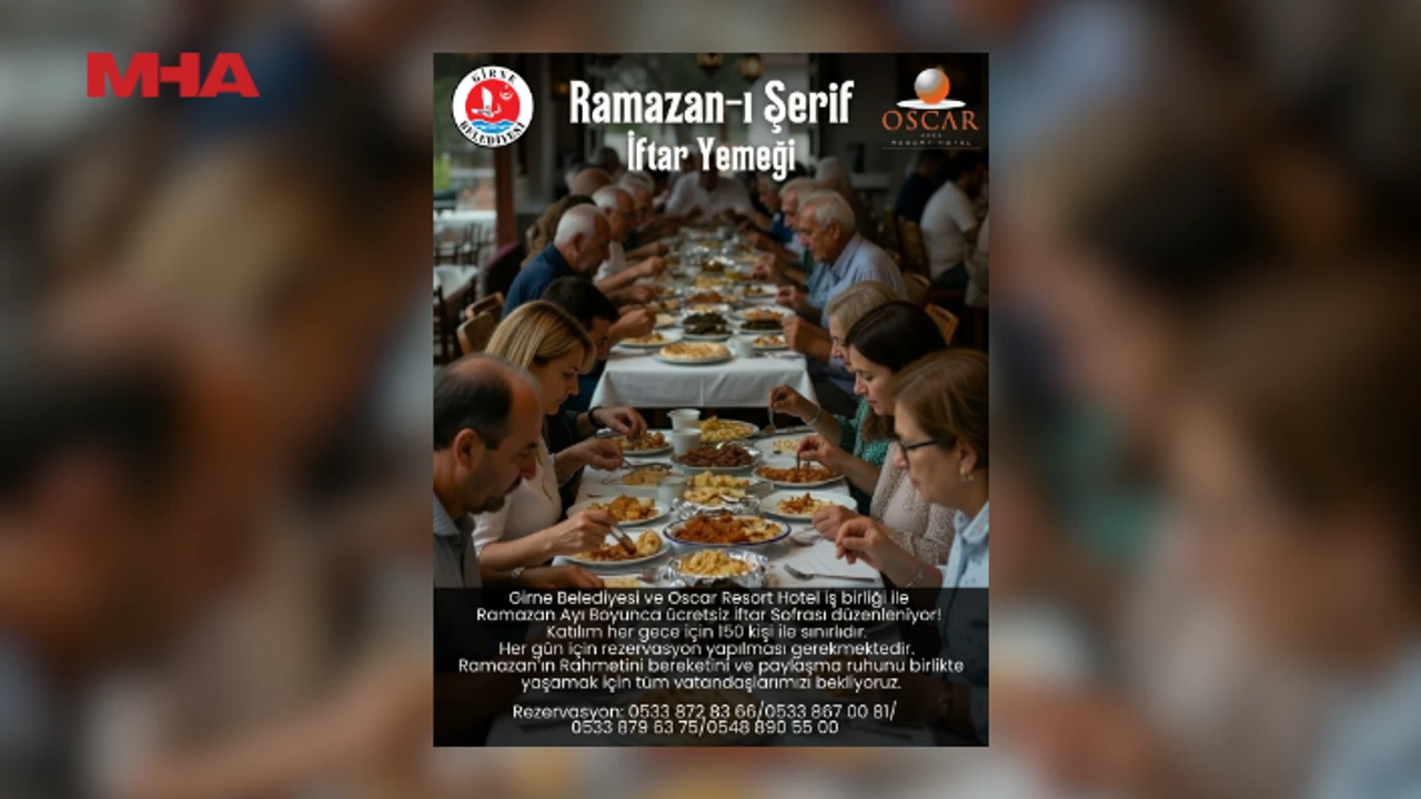 Girne Belediyesi ve Oscar Resort Hotel iş birliği ile Ramazan ayı süresince her akşam iftar sofrası kurulacak.