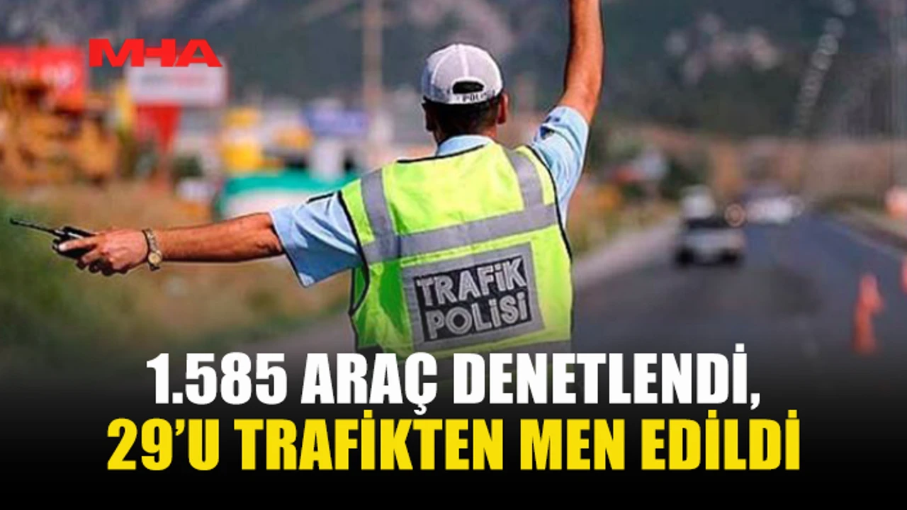 Polis Genel Müdürlüğü’ne bağlı Trafik Ekipleri tarafından ülke genelinde gerçekleştirilen denetimlerde 1.585 araç sürücüsü kontrol edildi. Denetimler sonucunda çeşitli trafik suçlarından toplam 250 sürücü hakkında yasal işlem başlatılırken, 29 araç trafikten men edildi.