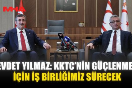 Türkiye Cumhurbaşkanı Yardımcısı Cevdet Yılmaz, “Anavatan ve garantör Türkiye olarak, Kıbrıs Türk halkının huzur, refah ve kalkınmasına yönelik gayretlere katkıda bulunmaya; Kuzey Kıbrıs Türk Cumhuriy...
