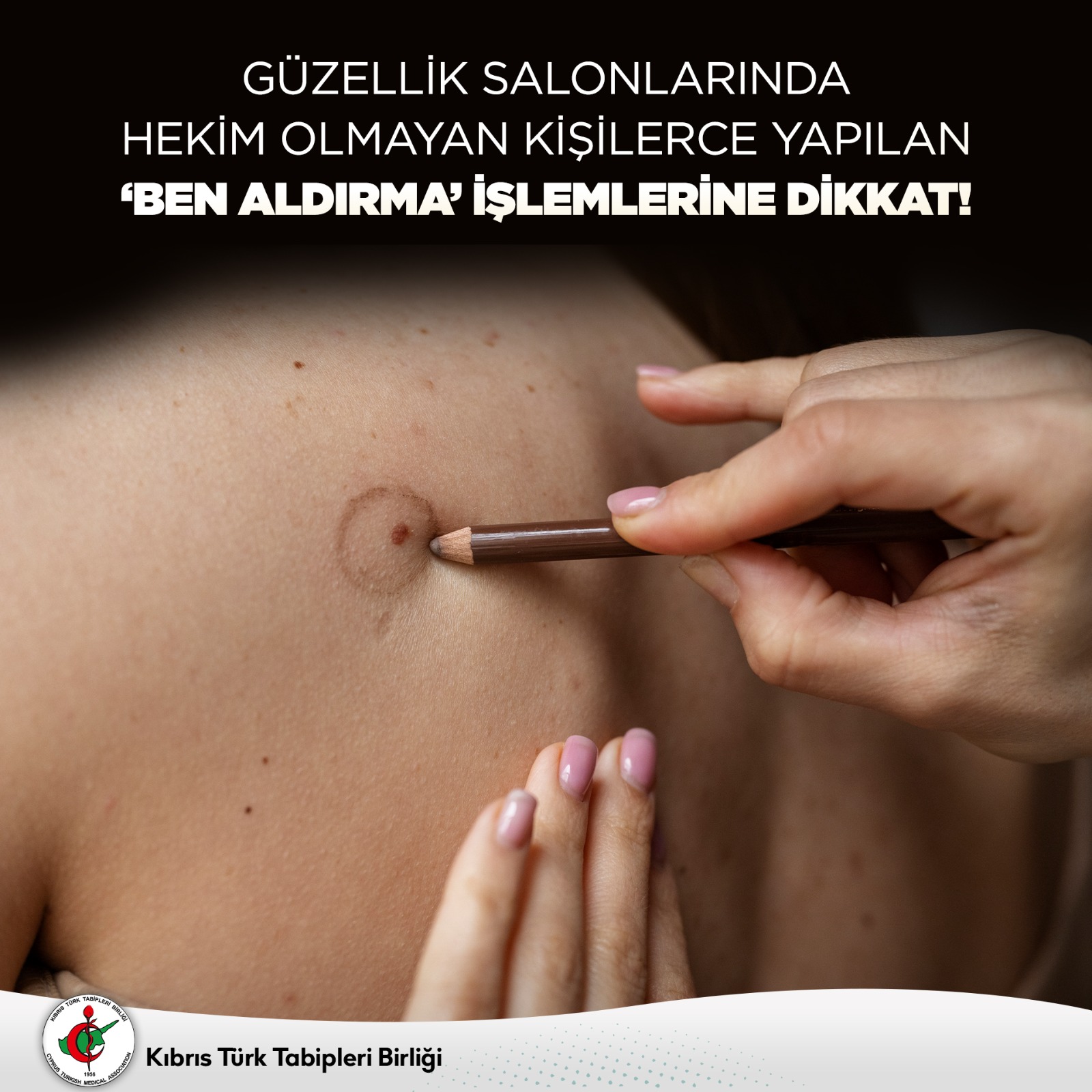Kıbrıs Türk Tabipler Birliği, son zamanlarda güzellik salonlarında çeşitli yöntemlerle “ben alımı” işlemi yapıldığını gözlemlediklerini belirterek, ben alımının tıbbi bir işlem olduğuna dikkat çekti v...