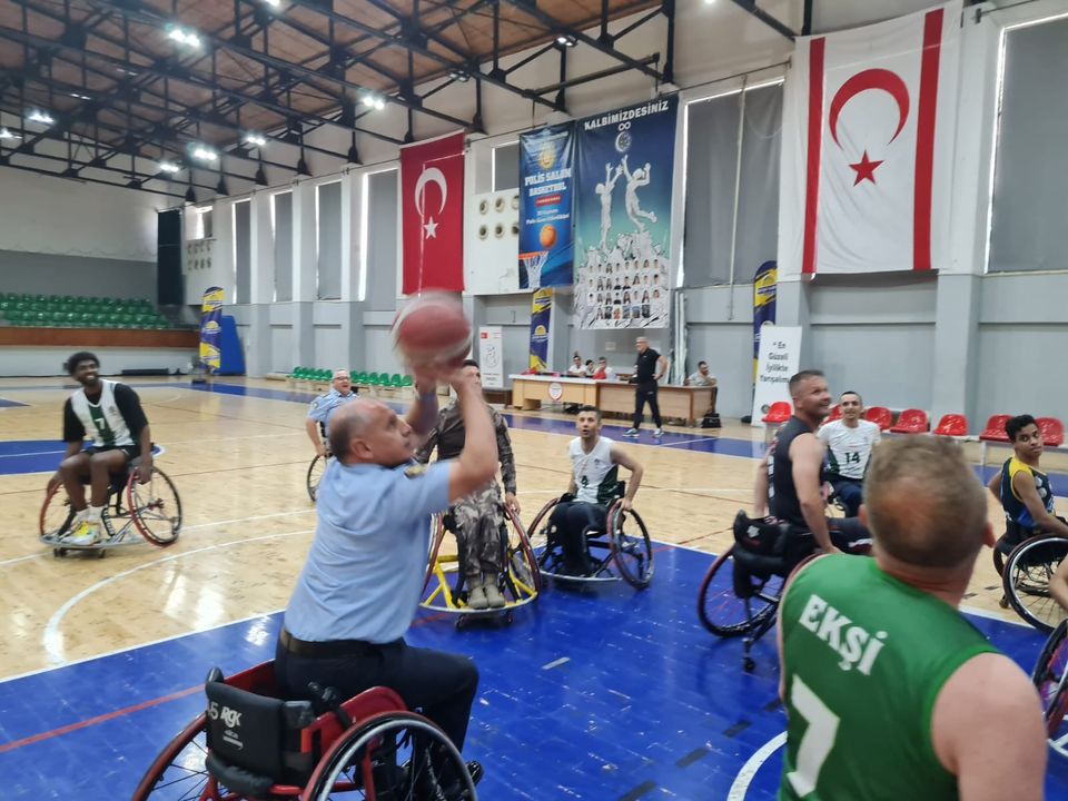 Polis Örgütünün Kuruluşunun 59’uncu yıldönümü ve Polis Haftası Etkinlikleri kapsamında düzenlenen 4. Basketbol Turnuvası final maçı öncesinde, Polis Mensupları ile Vakıflar Tekerlekli Sandalye Basketb...