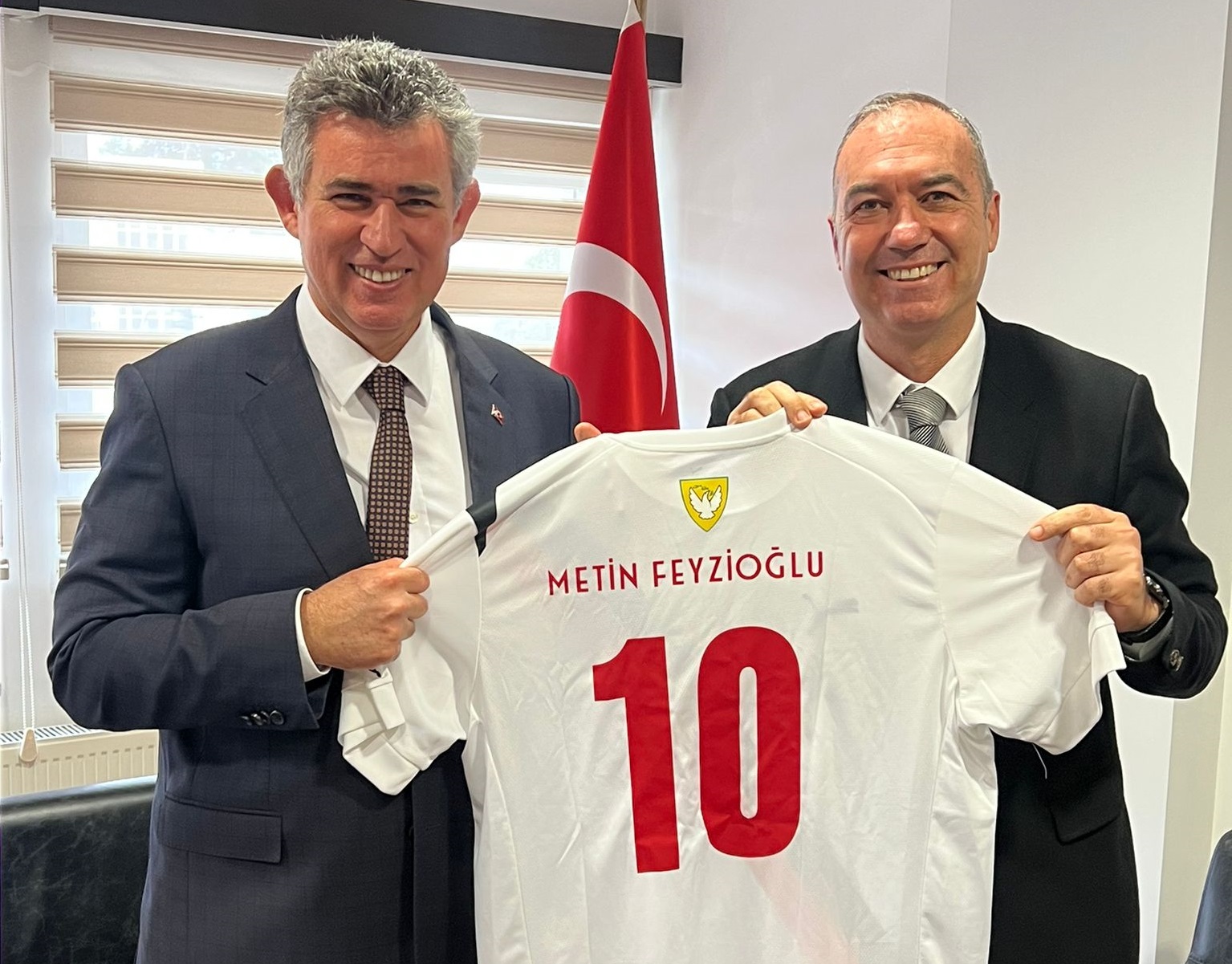 Kıbrıs Türk Futbol Federasyonu (KTFF) Başkanı Hasan Sertoğlu, Türkiye Cumhuriyeti’nin Lefkoşa Büyükelçisi Metin Feyzioğlu’na nezaket ziyareti gerçekleştirdi… Lefkoşa’daki TC Elçiliği’nde gerçekleşen z...