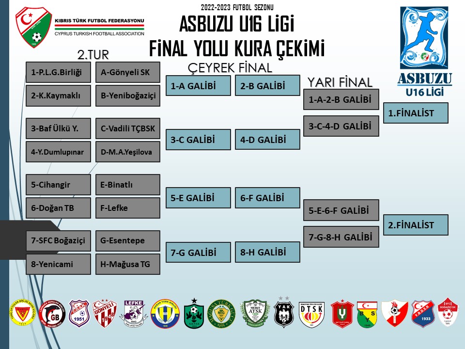Kıbrıs Türk Futbol Federasyonu (KTFF) tarafından organize edilen Asbuzu U16 Ligi’nde final yolu eşleşmeleri belli oldu. KTFF Ahmed Sami Topcan Toplantı Salonu’nda gerçekleşen kura çekimi sonucunda 2.t...