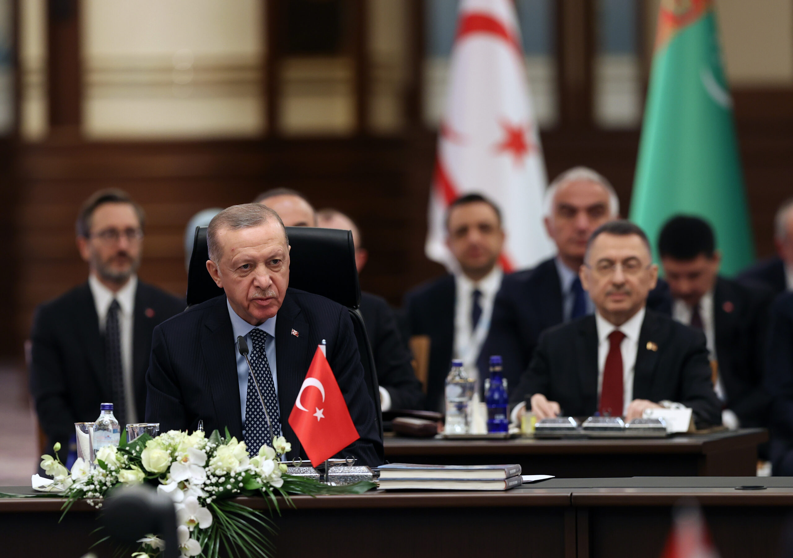 TC Cumhurbaşkanı Recep Tayyip Erdoğan, Cumhurbaşkanlığı Külliyesi’nde düzenlenen Türk Devletleri Teşkilatı (TDT) Olağanüstü Zirvesi’nde konuştu. Konuşmasına katılımcıları selamlayarak başlayan Erdoğan...